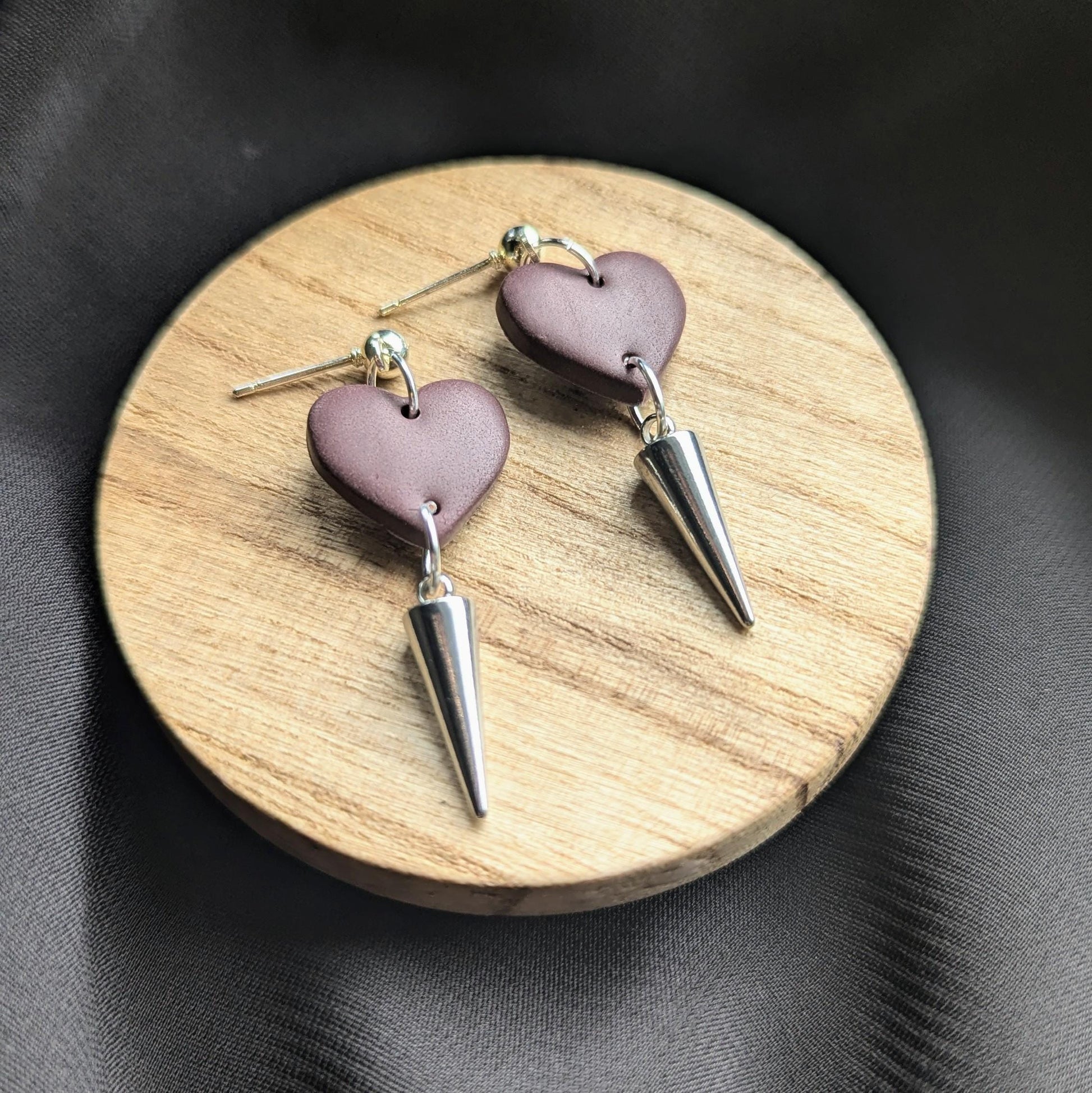 A choice of Black/Deep Red gothic heart dangles with a spike adornment.