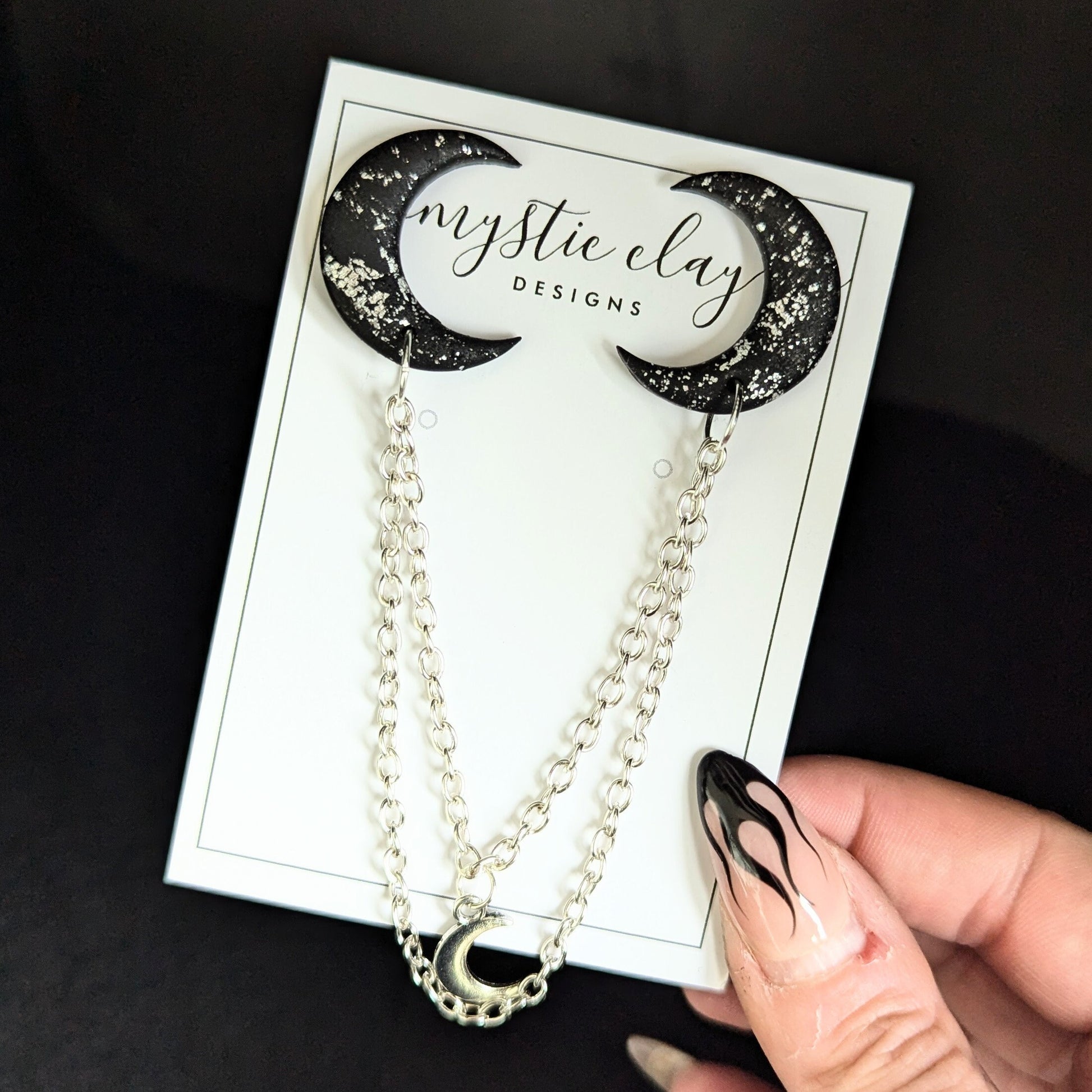 A handmade crescent moon collar chain. Celestial and corp goth with a silver lunar charm.