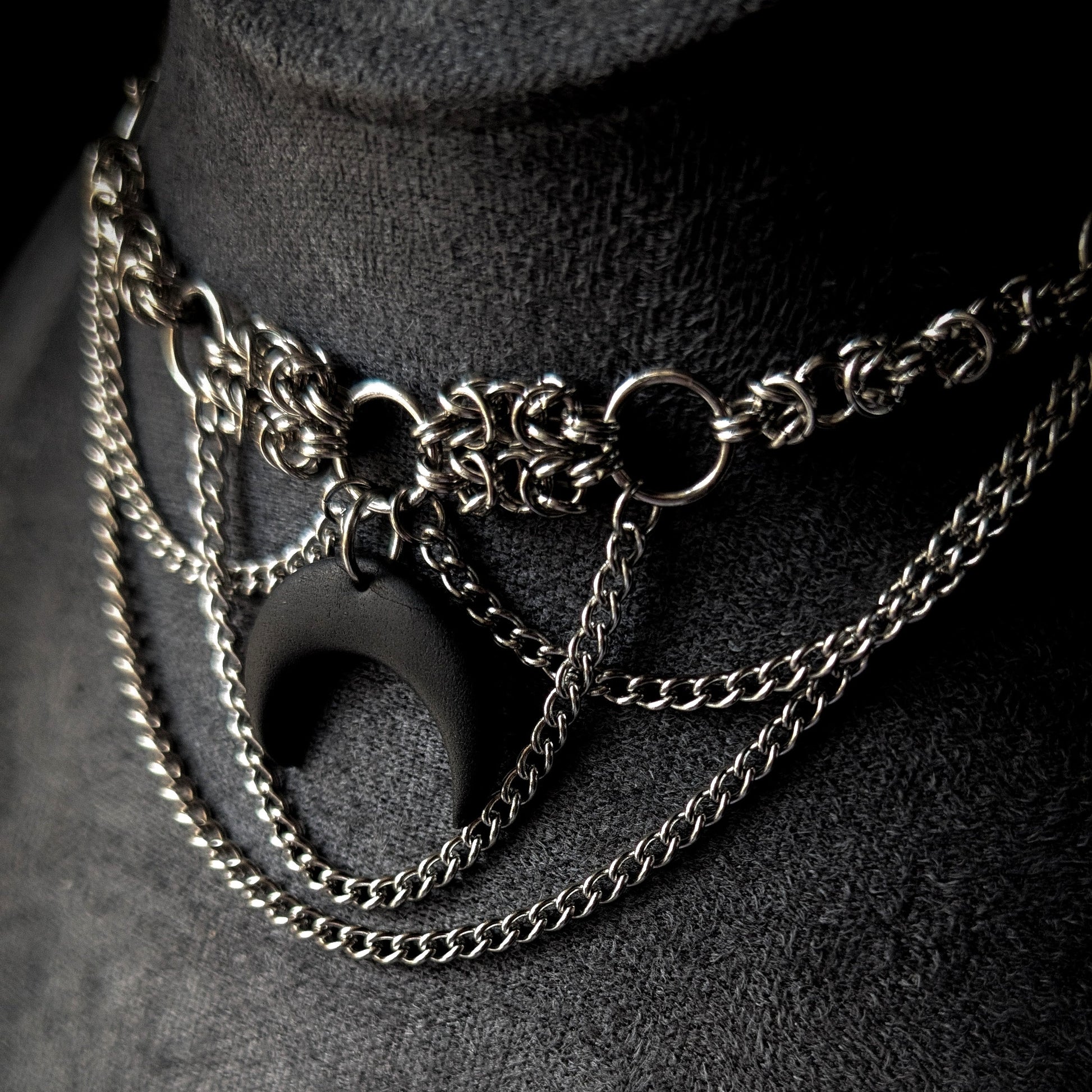 Celebrate your inner Goddess with a delicately crafted stainless steel choker - a gorgeous combination of chainmail and celestial goodness.